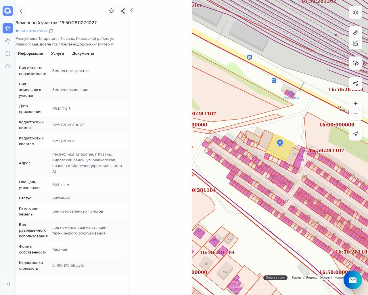 Земельный участок, площадь 564 кв.м., кад.№16:50:281107:1027